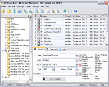 By means of MP3 Tag Editor you can easily edit ID3 tags, create mp3