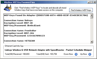 WEP Key Password Spy will instantly recover all WEP keys and
